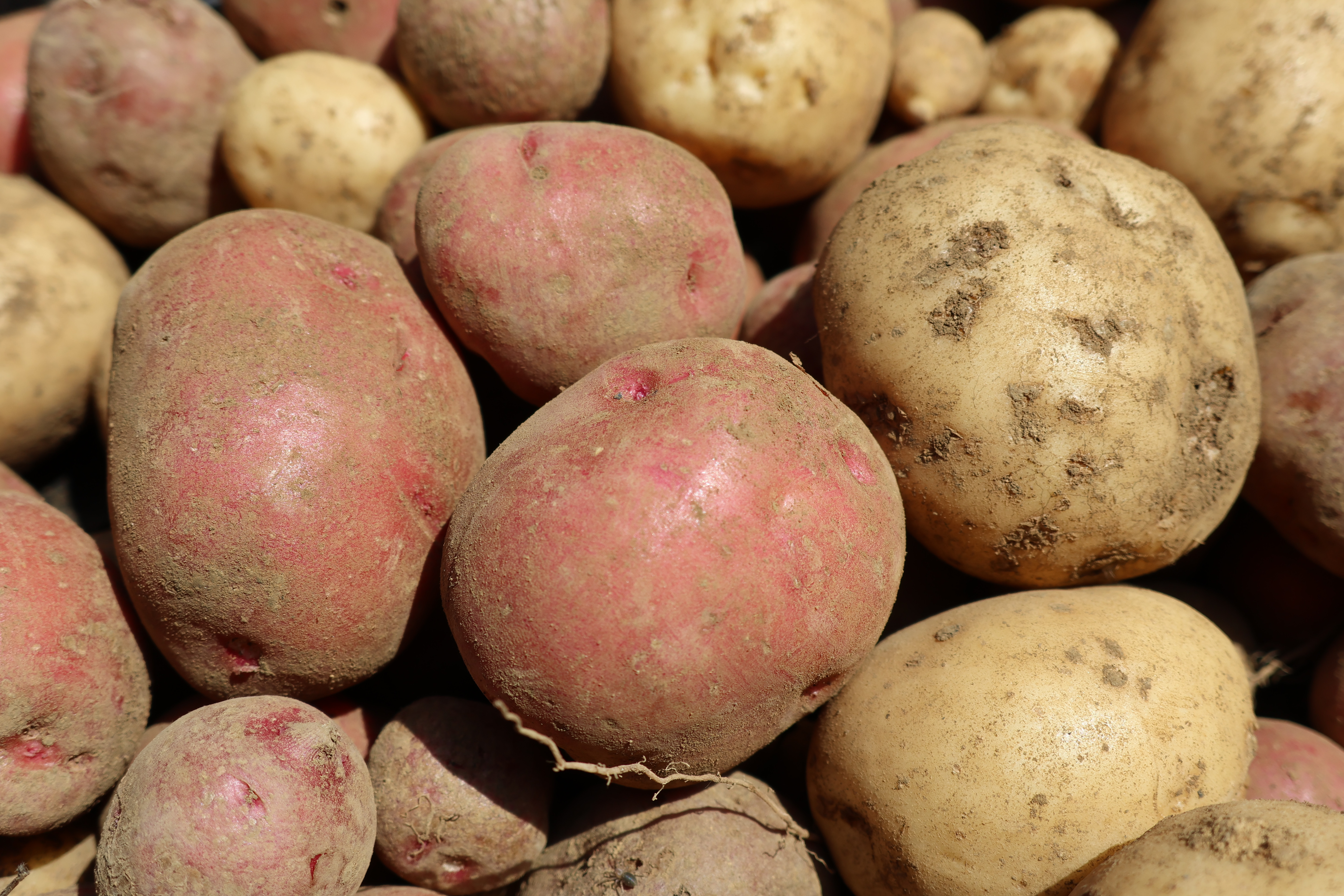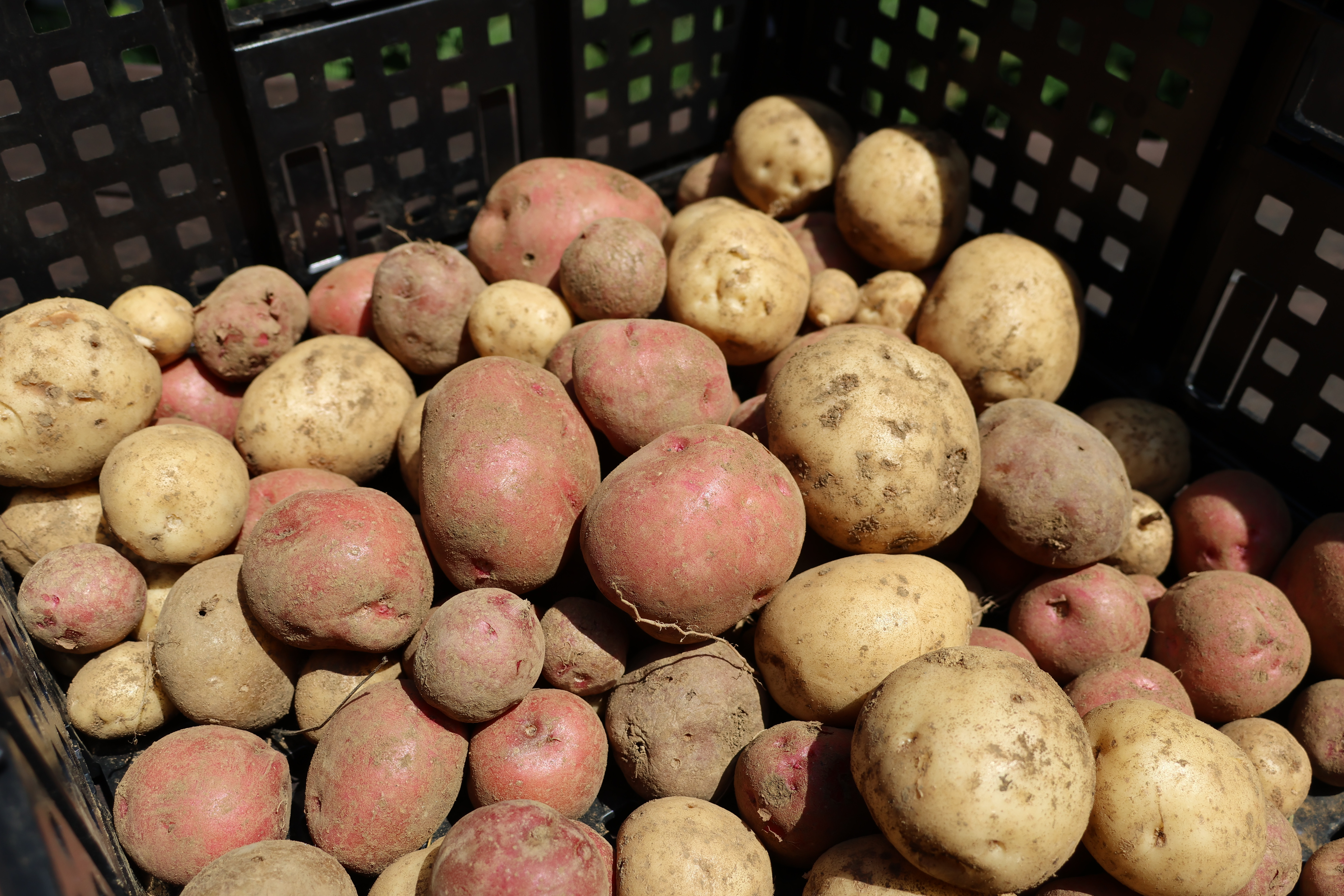 赤いじゃがいもは、アンデスレッド。黄色いのはデジマ。初めて取り組む品種です。この品種を聞いて、「種芋を繋ごうとしている」と思った方は自然農に詳しい方かもしれません。実は、その通りなのです。