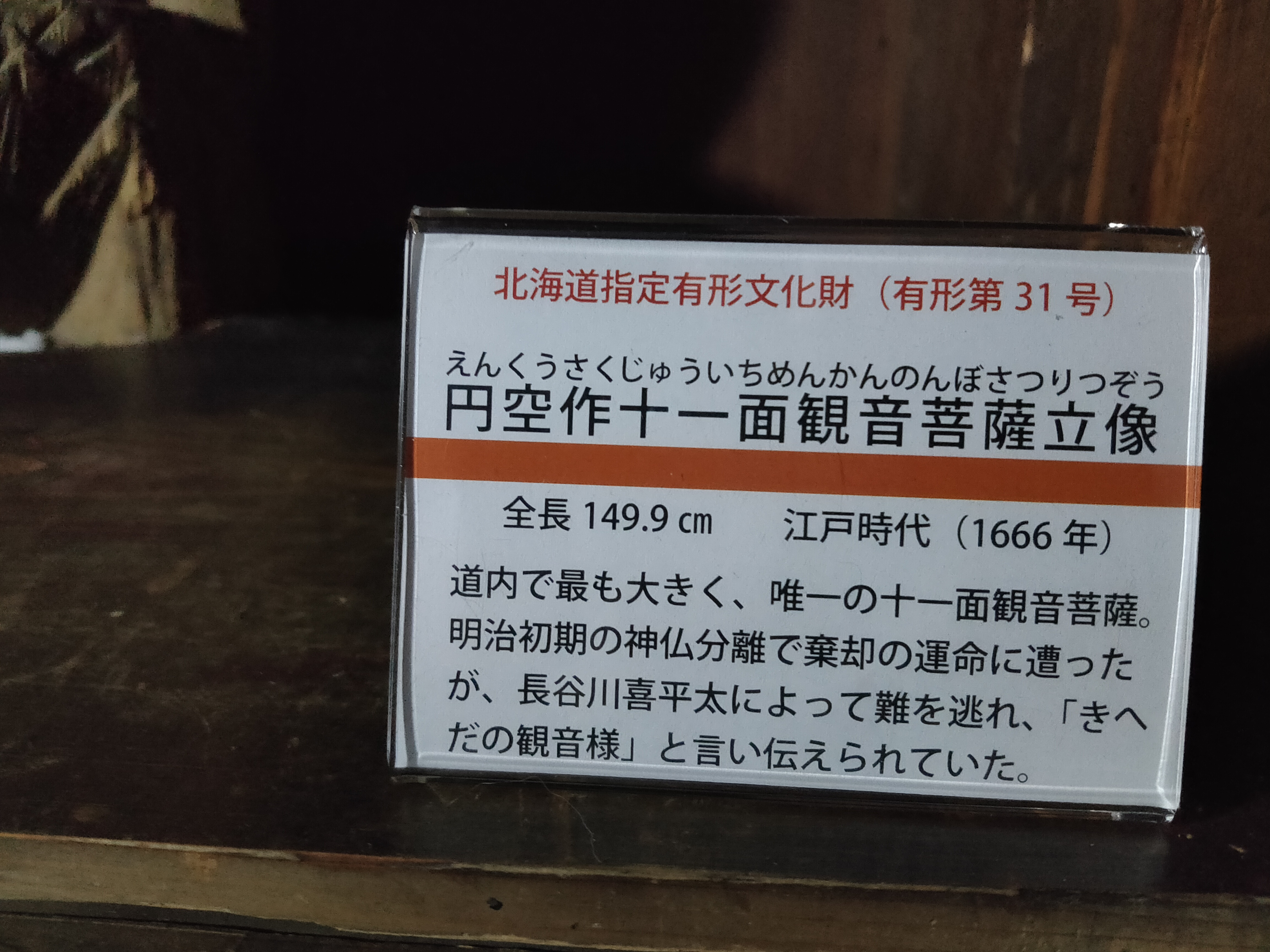 北海道で唯一の十一面観音で、北海道で一番大きいとのこと。