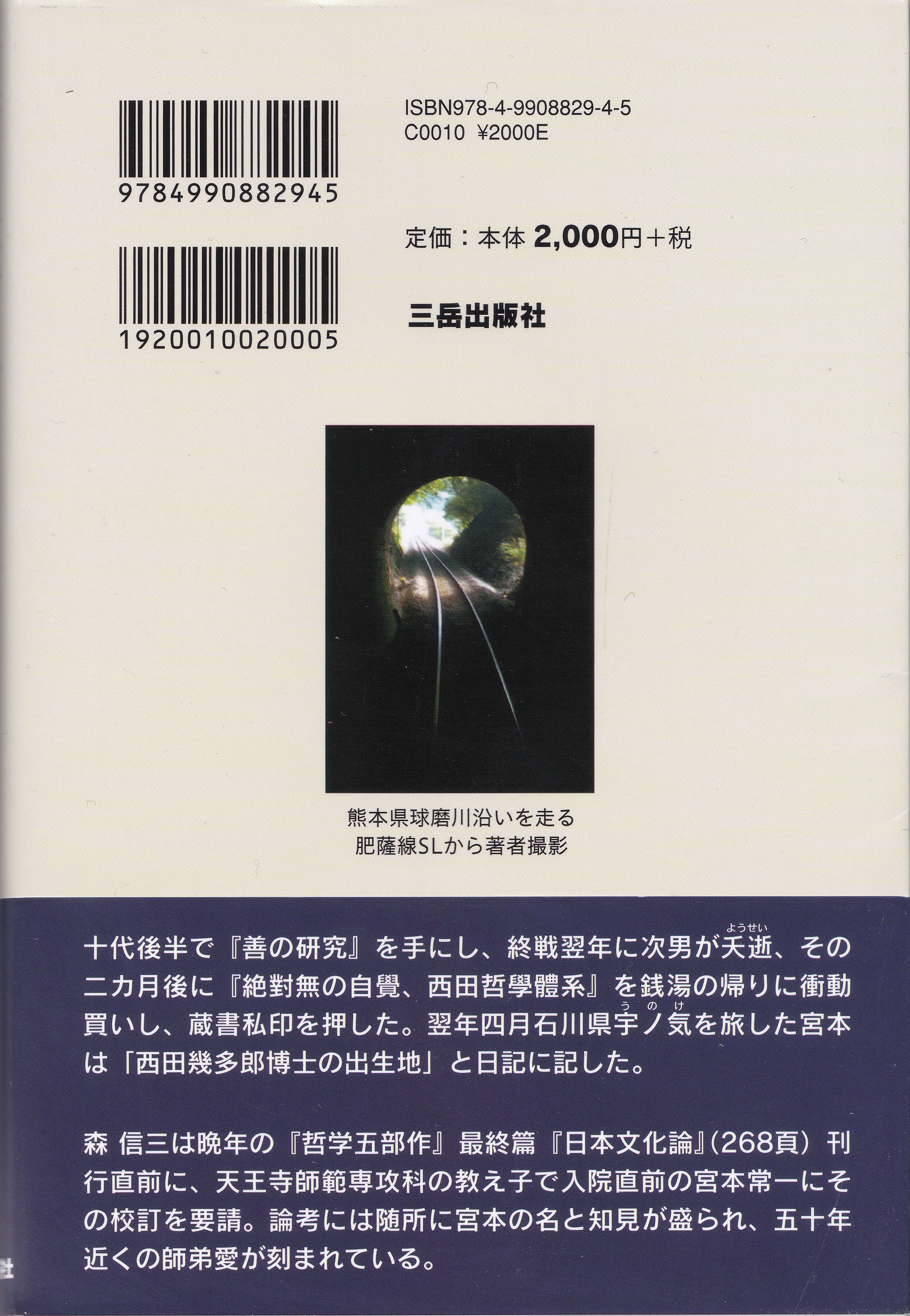 西田幾多郎(1870-1945)、森信三(1896-1992)、宮本常一(1907-1981)の出生地を訪ね、著者独特の視点で考察した本。これまでに三者それぞれの生い立ち、生き様、思想、仕事などを調べ上げた「縦軸」の本はたくさんある。しかし、師弟関係として微妙に繋がりつつも異なる生き方をしたこの三人を「横軸」に並べ、そこに「苦悩と悲哀」を読み解く人はどれほどいるだろうか。それにしてもなぜ、この三人なのか。なぜ苦悩と悲哀を入り口としたのか。もしかしたら作者の筆舌に尽くし難い苦悩と悲哀も重ねられているのではないかと勝手に想像する。そう考えなければ成し得ない仕事ではないか。
