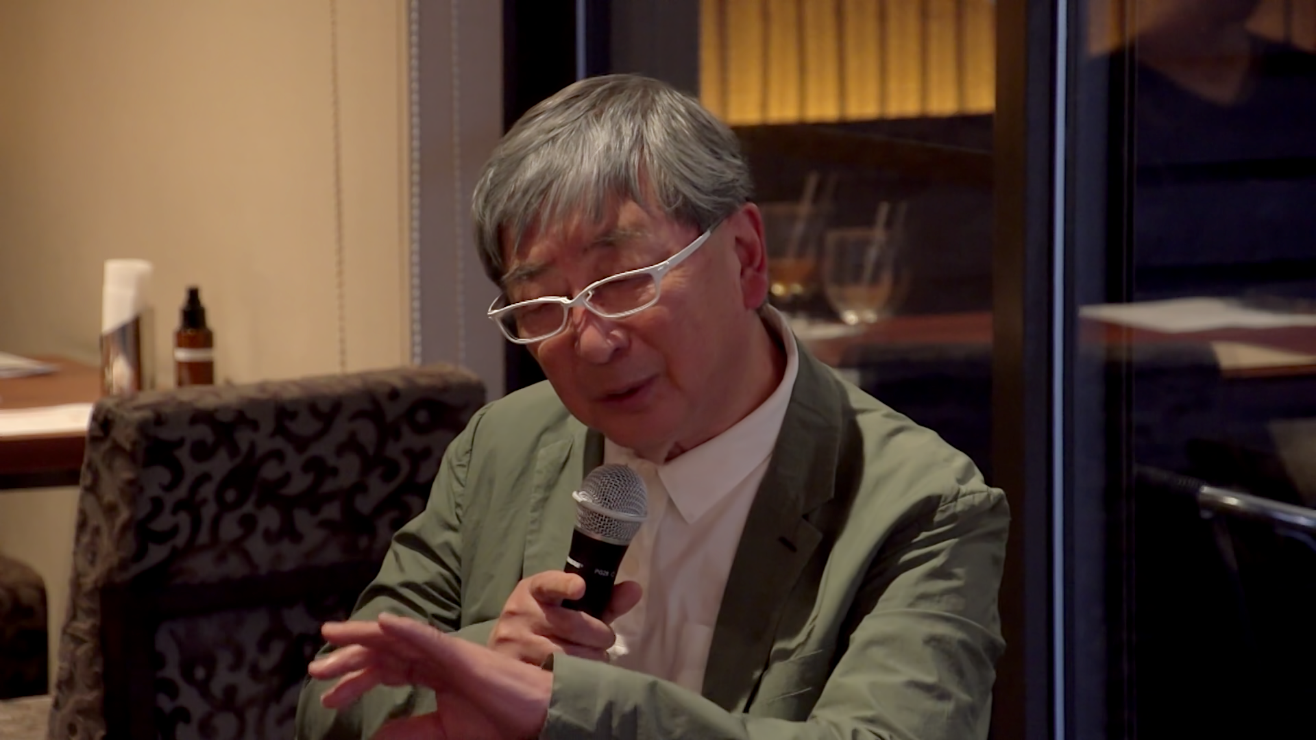 ゲストは建築家の伊東豊雄さん。主催者の一人であるささらプロダクションの由井英さんが、ゲストから仕事にまつわる「もの語り」を引き出していくという形で第一部は進行しました。その後ディナータイム(フリートーク)を経て、第二部はささらプロダクションの小倉美恵子さんの司会で、伊東さん、由井さん、参加者の皆さんが自由に想いや考えを交わす場となりました。