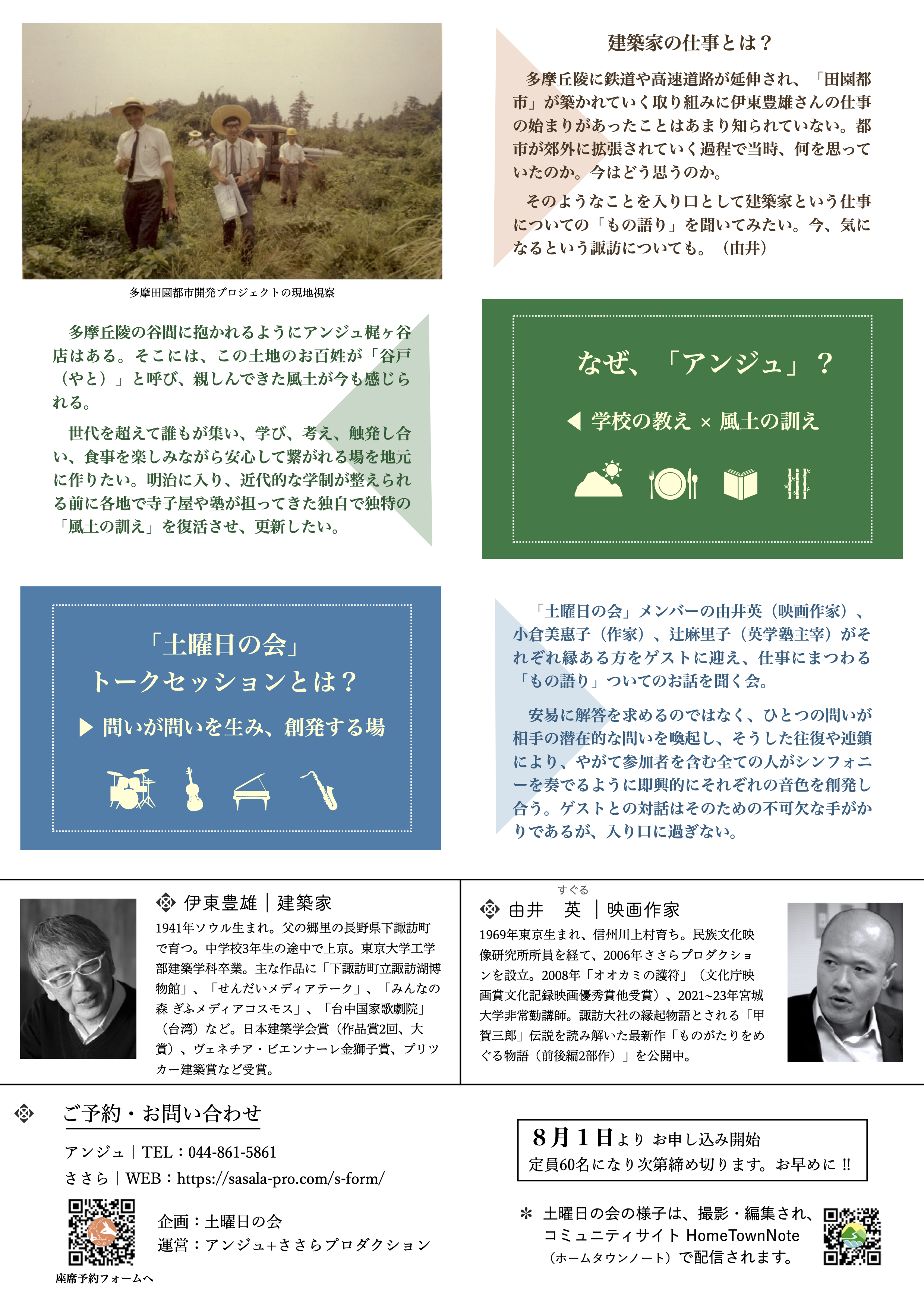 「土曜日の会」多摩丘陵が始まりました。初回のゲストは建築家の伊東豊雄さんです。トークセッションのテーマは、田園都市と諏訪。2時間ほどのやりとりを20分にまとめました。こうした小さな作品を学校の授業やちょっとした地域の集まりなどでみんなで見ていただければ嬉しいです。 理解できたことを話し合うというより、理解できないこと、うまく言葉に表現できないことを引き出し合う、そんな使い方のできる作品ではないかと思います。