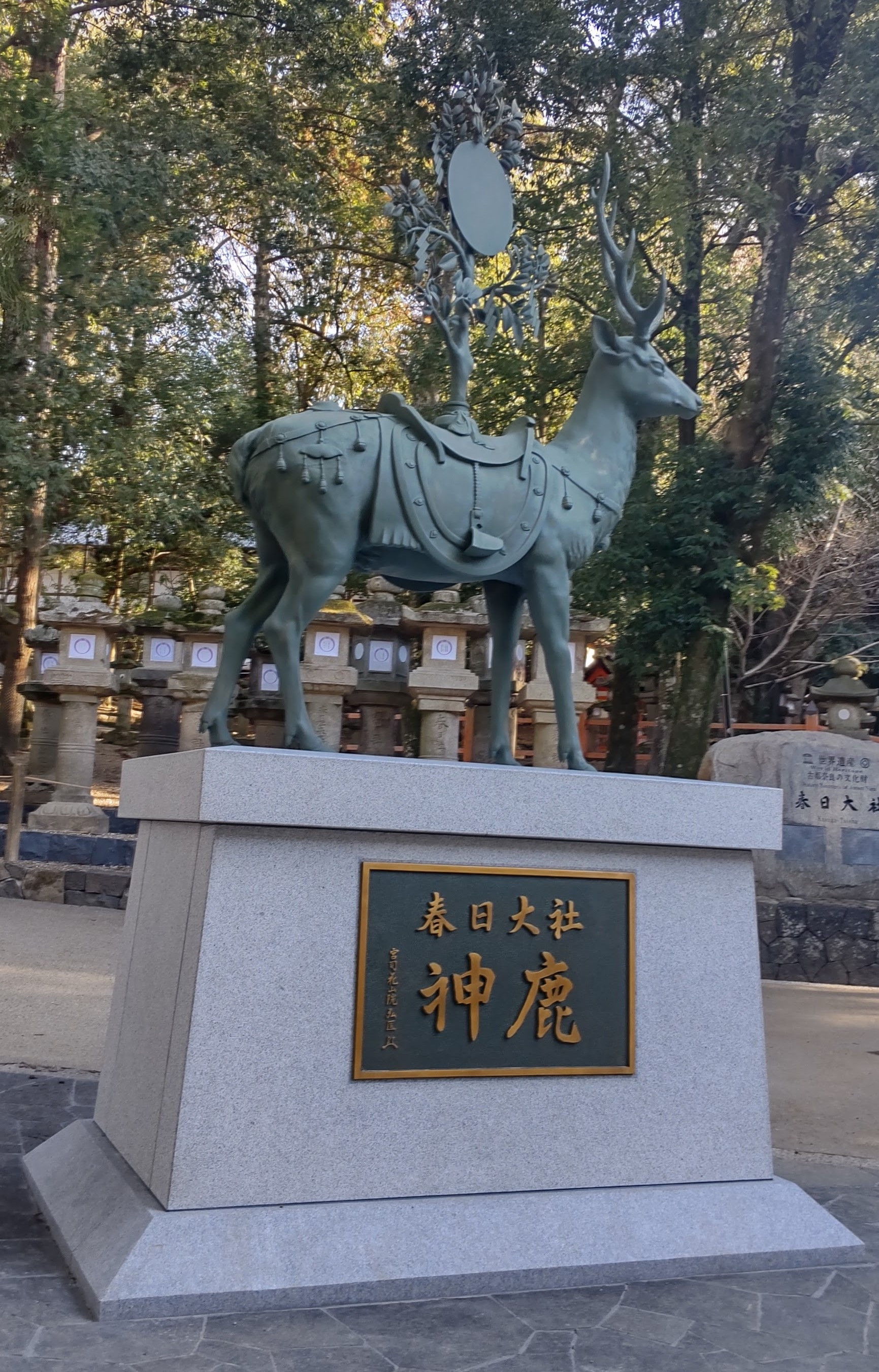 春日大社には神様のお使いの鹿たちが居ます。1300年ほど前に、平城京のお守りとして創建された際、常陸の国の鹿島神宮から、大変強い神様をお招きしました。その神様が鹿に乗って来られたと伝わっているからです。