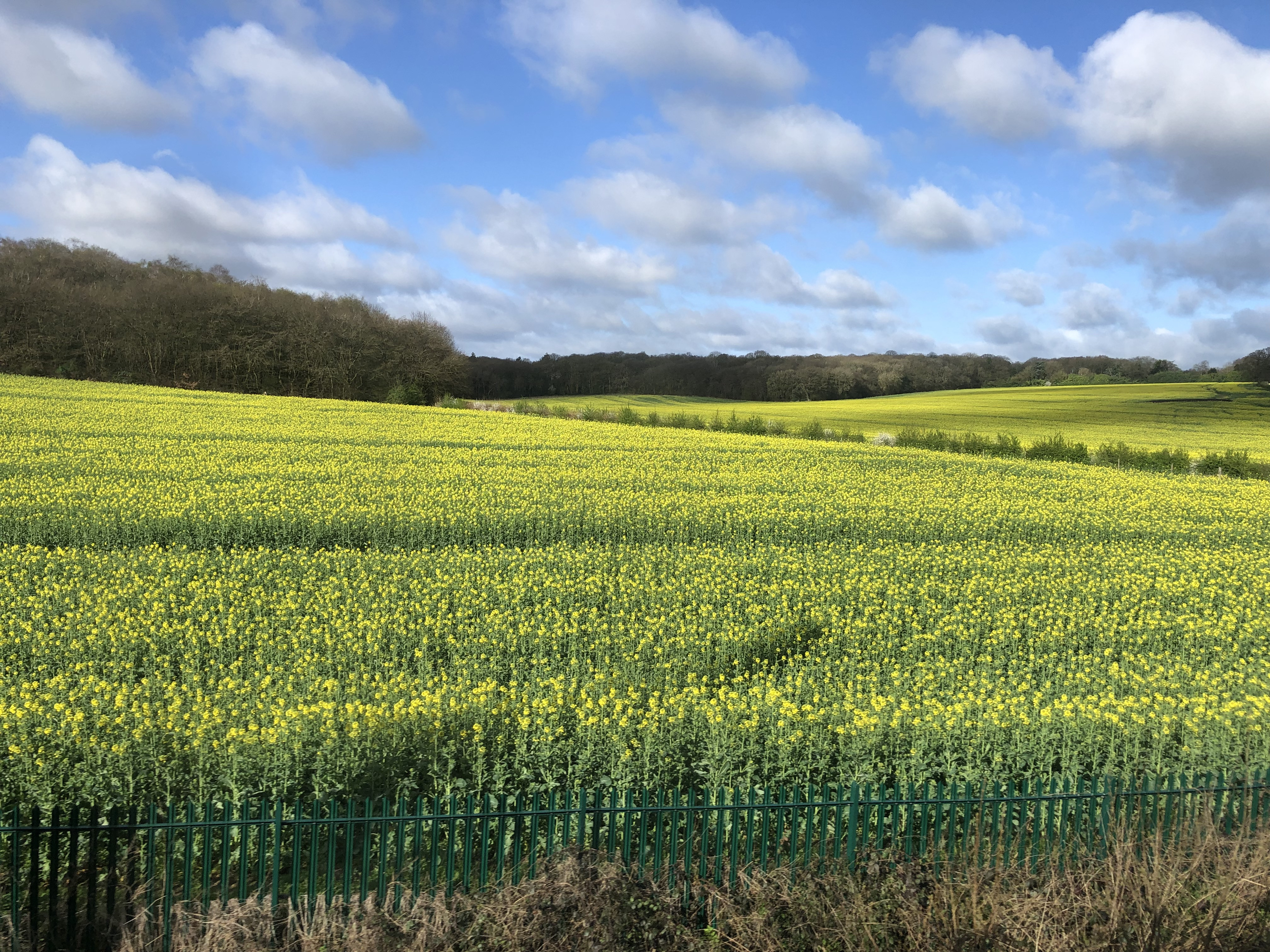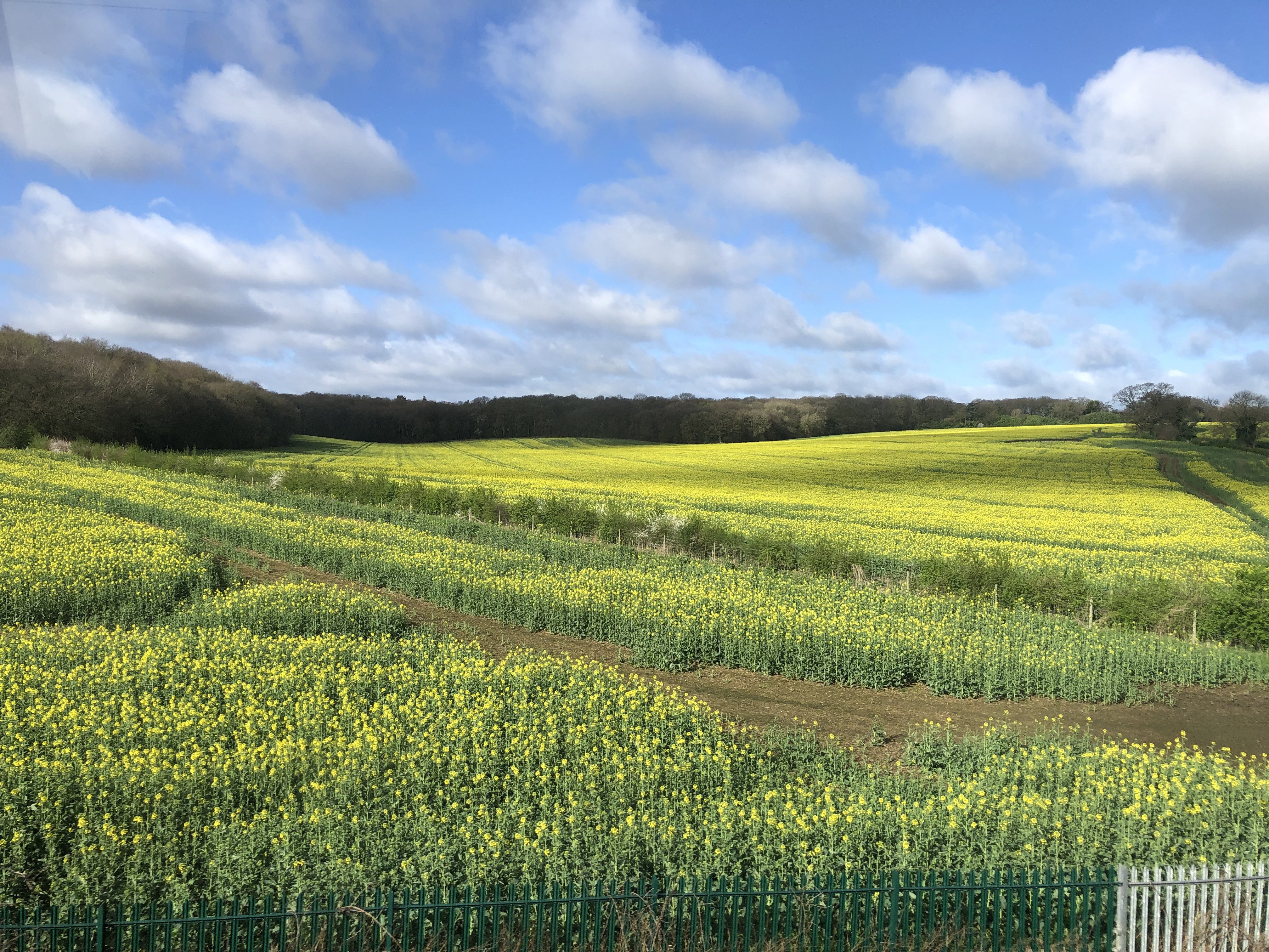 長く住んでいたロンドンの小さい建物がひしめき合った景色と違って、田舎の景色はのんびりと優雅です。たまに、羊や馬が草を食んでいる姿も見られます。
