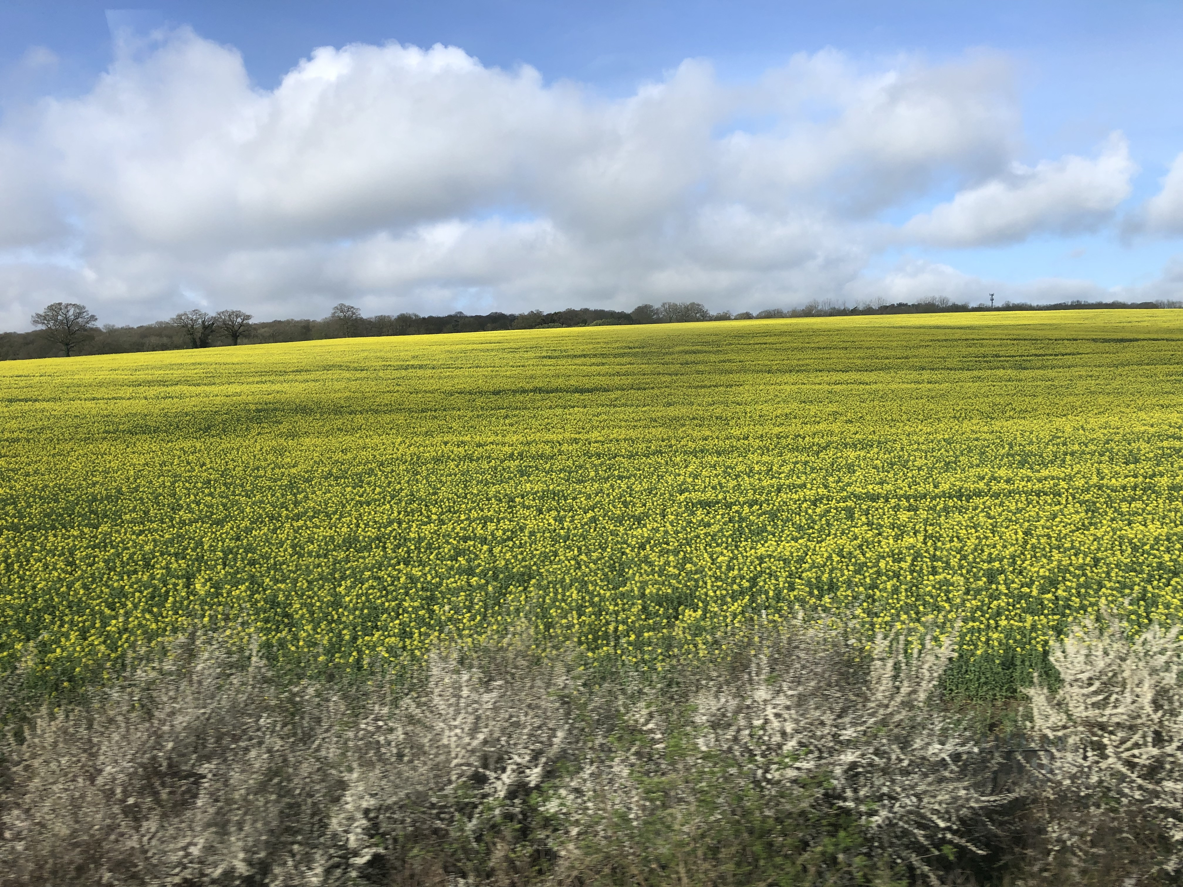 先日、いつも何気なく通り過ぎる緑の風景が、ぱっと眩しいくらいの黄色い菜の花畑になっていました。