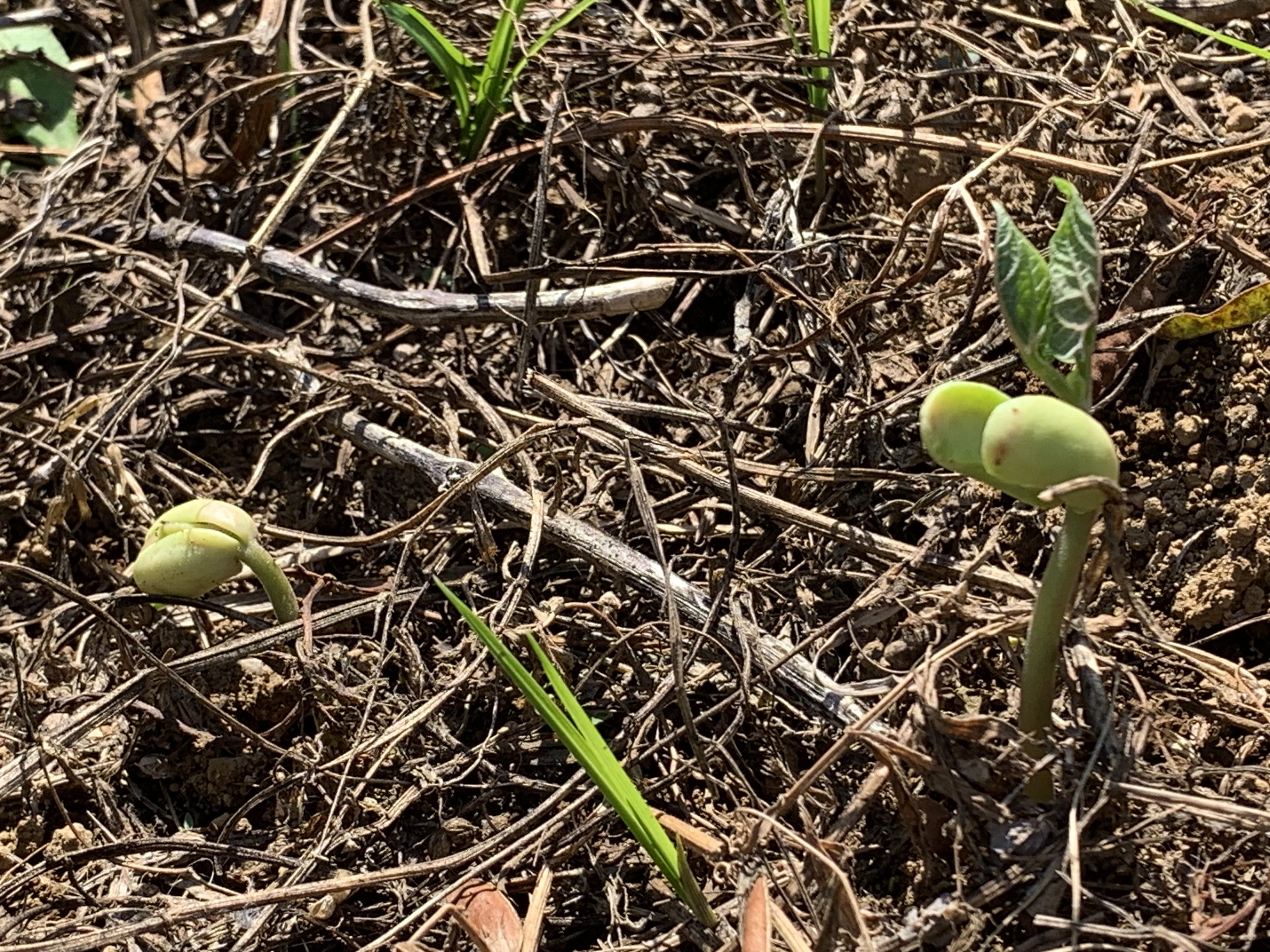 土の中から首をもたげ、皮が剥かれ、豆が二つに割れた。