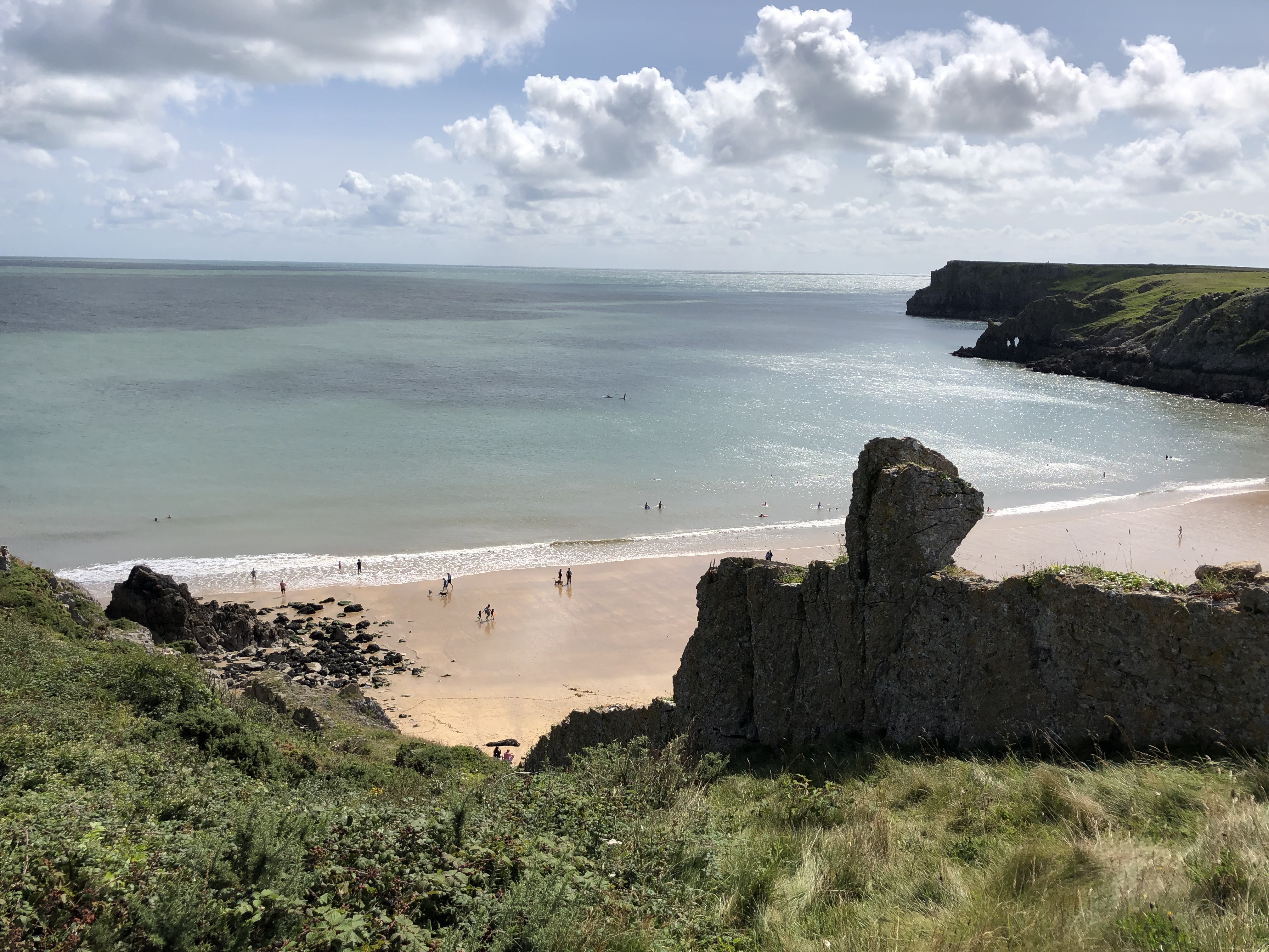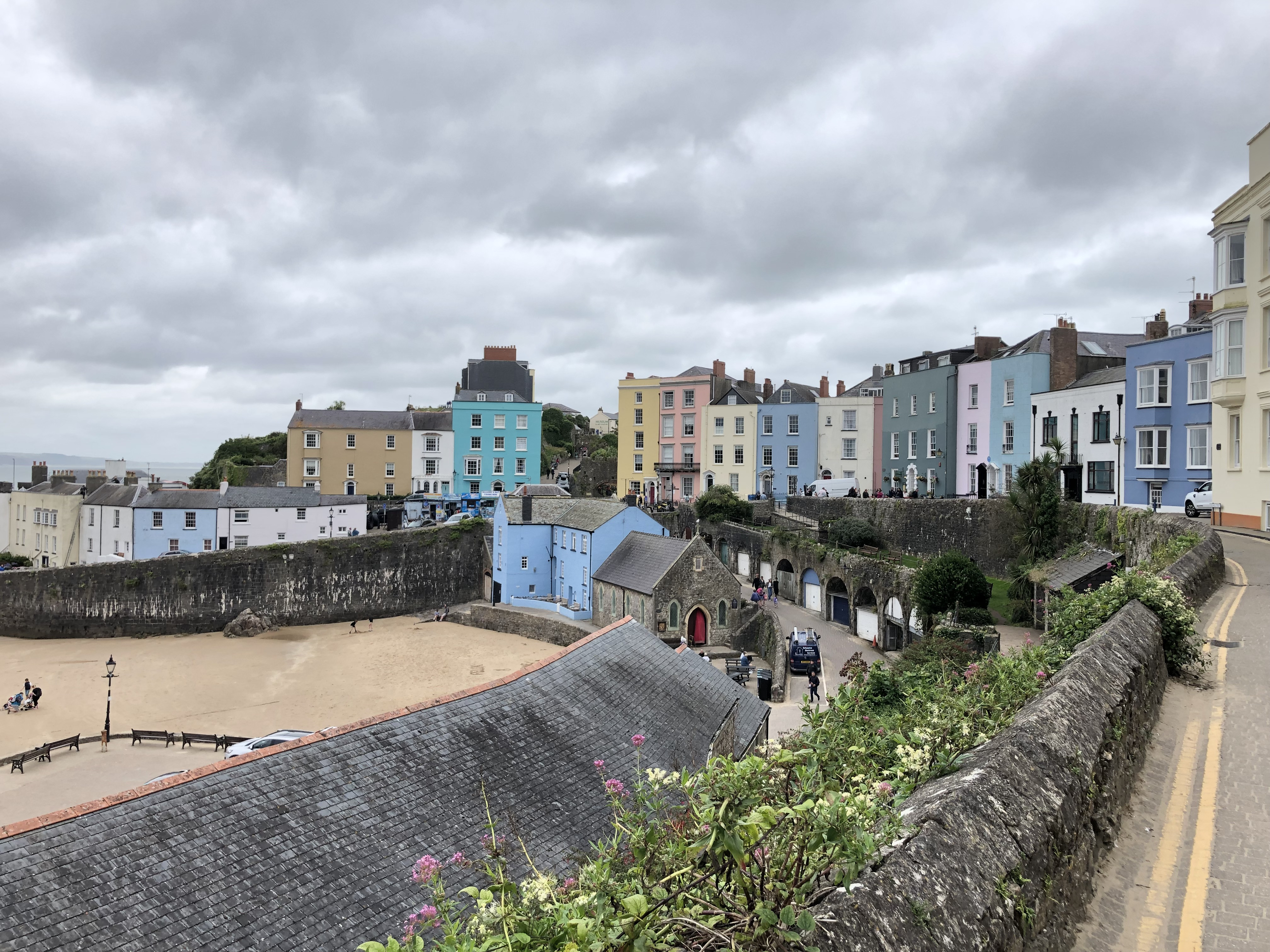 訪れた場所の一つは、首都のカーディフから1時間半ほど離れたテンビー(Tenby)という街。テンビーはカラフルな建物が並び、町の中心は沢山の観光客であふれています。イングランドで見たシーサイドのイメージ(カジノやゲームセンター、遊園地、フィッシュアンドチップスのお店が並ぶ雑然とした雰囲気)と違って、とても洗練された素敵な街でした。近くのビーチは駐車場から15分ほど歩きます。駐車場の近くにトイレと小さいカフェがあるだけで、ビーチの近くには何もありません。駐車場は満車になるほどにぎわっているのに、すっきりと美しい景観を保っている様子に感心してしまいました。
