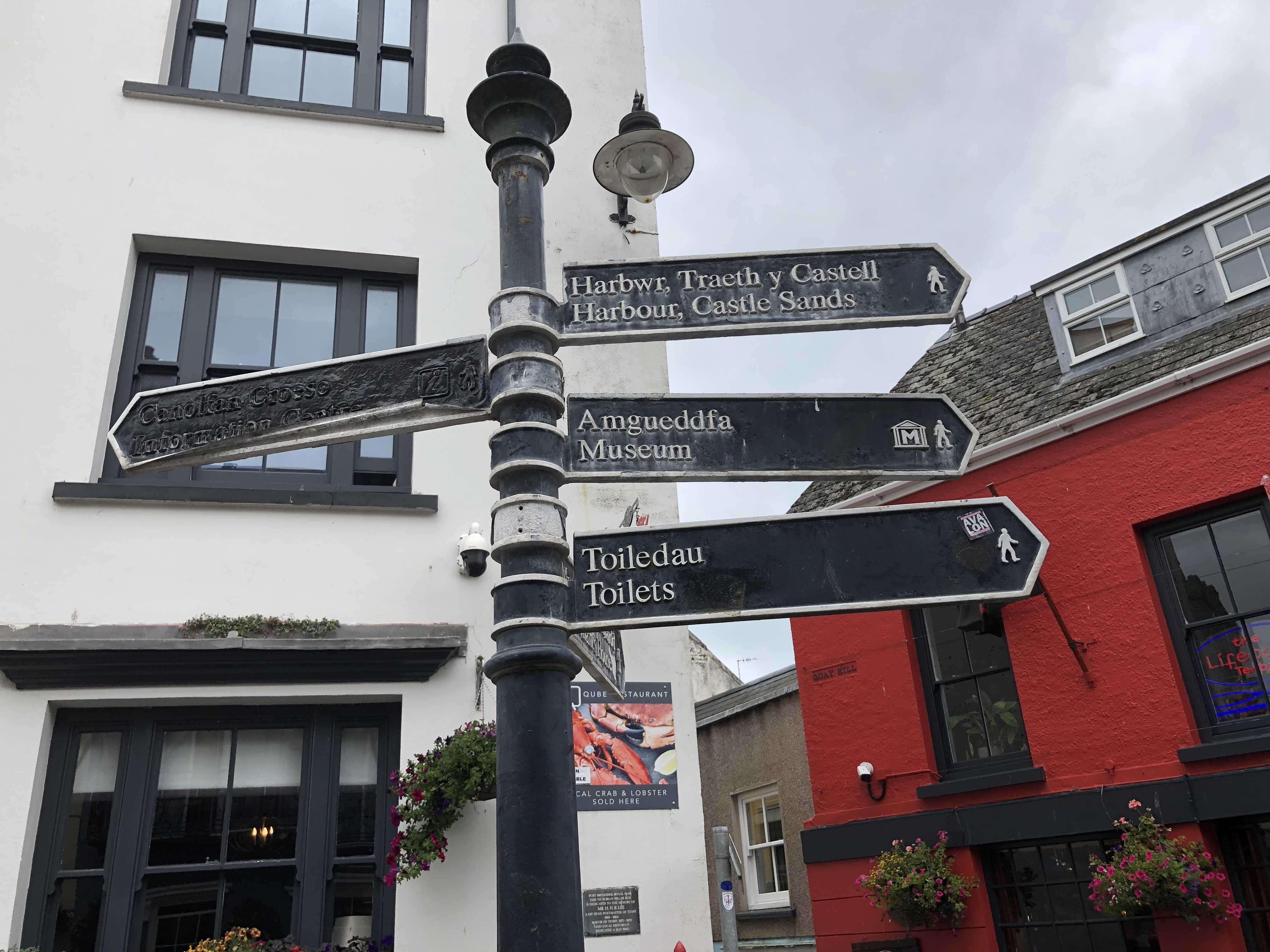 前置きが長くなりましたが、先日イングランドの西にあるウェールズを訪れました。私の住む場所からは車で休憩をはさみながら5時間ほどかかります。ウェールズに入ったとたんに目に留まるのが、英語の下に書かれているウェールズ語。車道の標識も、お店の中の小さな表示もすべて2か国語で書かれています。ウェールズに住む人は英語を話しますが、ウェールズ語も小学校から授業があり、言語と文化が存続されるように英語と同様に公用語として使われているそうです。
