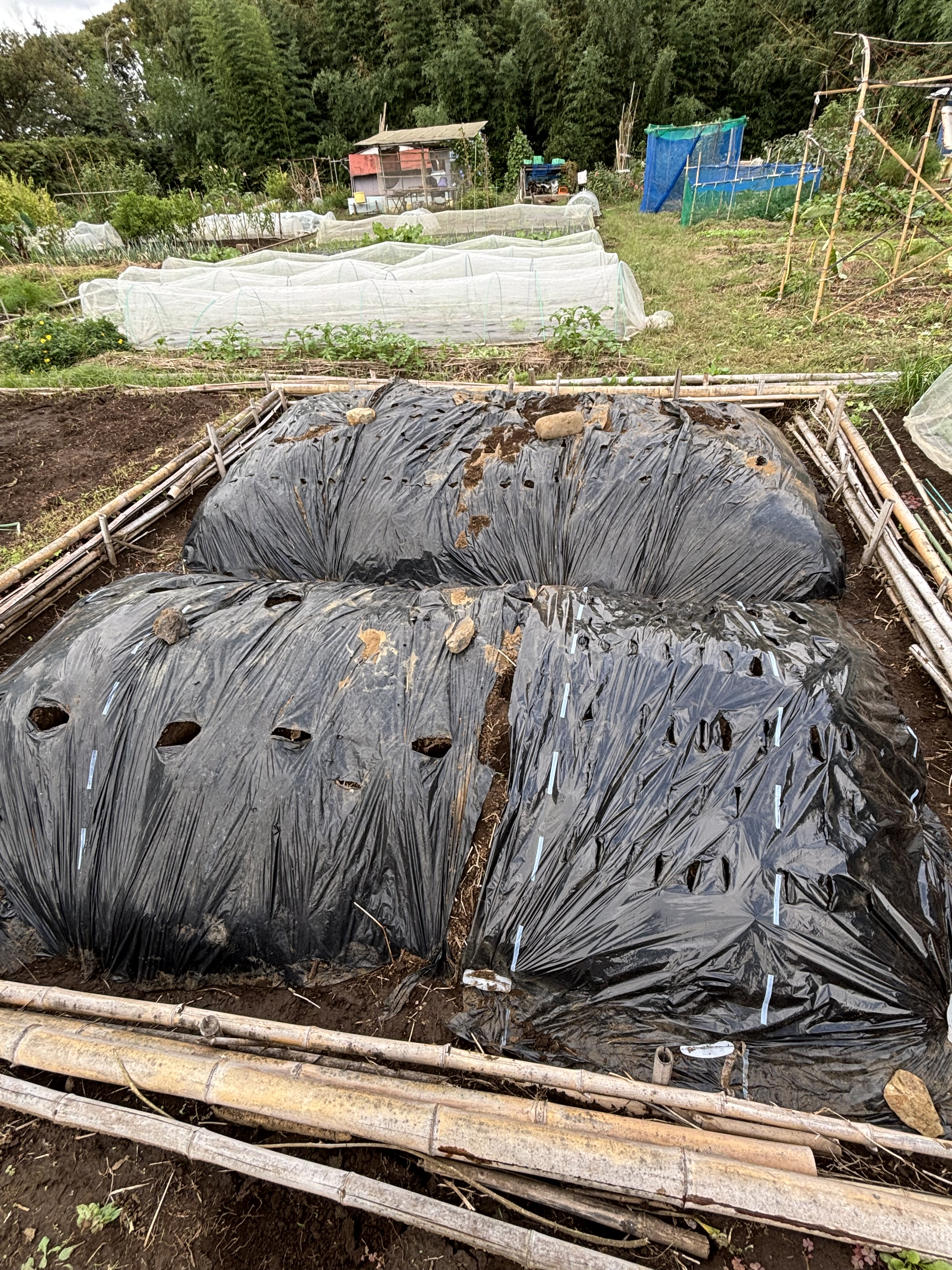 こんもりとした畝には、どのような有機堆肥が乗せられているのでしょうか。結構な量ですよね。