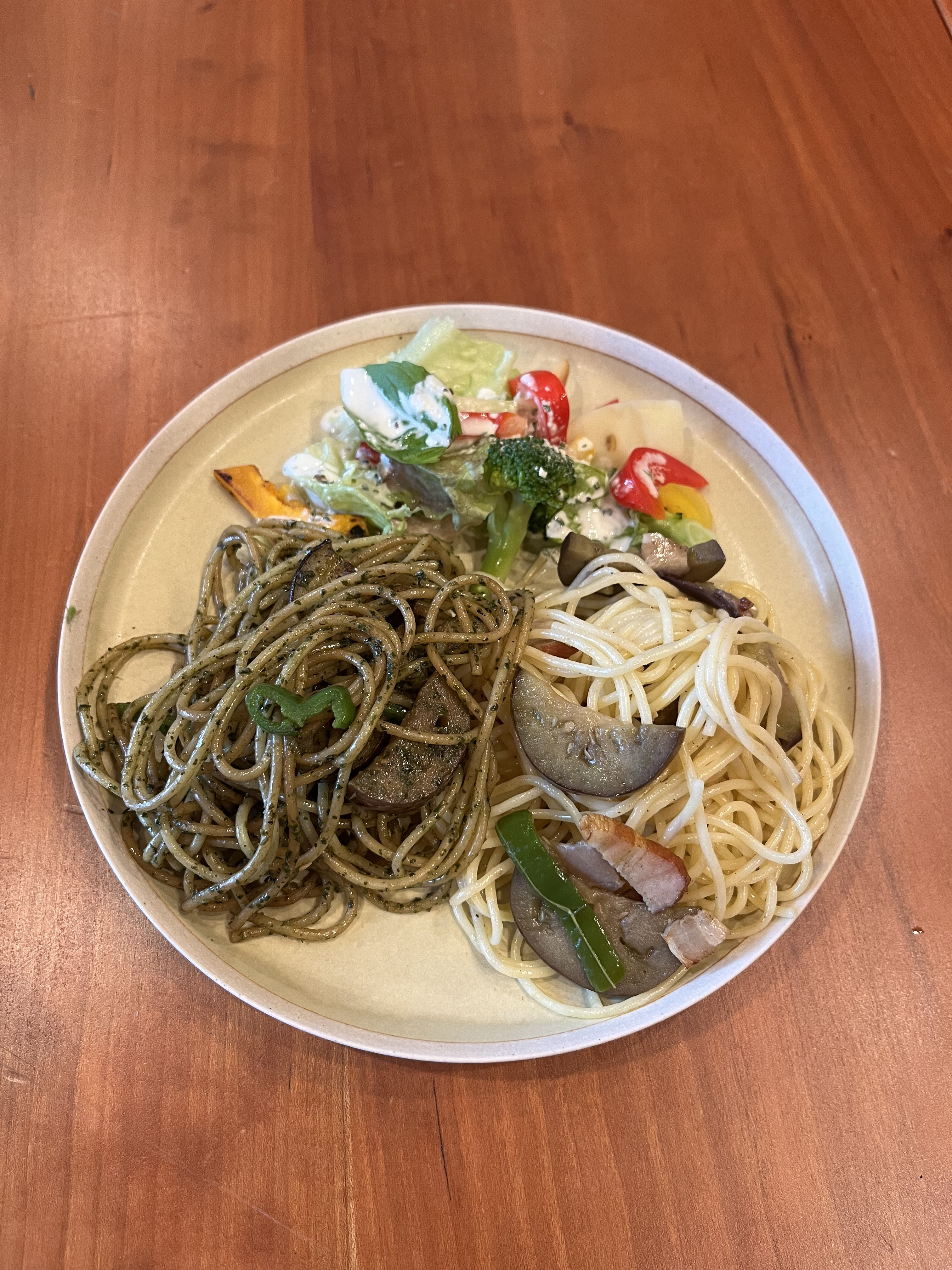 できあがったパスタランチはもちろん美味しい(^^)vごちそうさまです!私も台所を任せられる存在になりたい。料理は一日三回できる。