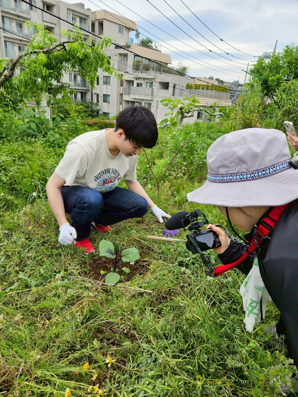 今日の私は、専ら記録の動画撮影に徹していた。同時多発的に起きている場面を、ひとつに対象を絞って撮影をすることは今までにない難しさ。自分が撮影した動画を振り返ってみると、自分の視点が客観的に見えて新しい発見があった。私は、「全体をみる癖」があることが分かった。例えば「播種」という場面においても、その行為に集中して記録するよりも、その時周囲の様子はどうなのか、土と人間の位置関係は?と意識が散漫としてしまう。すべてを観察対象にしているからこそ、映像にしてみると、漫然としたメリハリのない絵が撮れる。ただ、視覚とは別に映像には音声が入る。周りの声や風の音で周辺の様子をあらわせることも理解したので、映像と音声のコンビネーションを大切にして撮っていきたい。