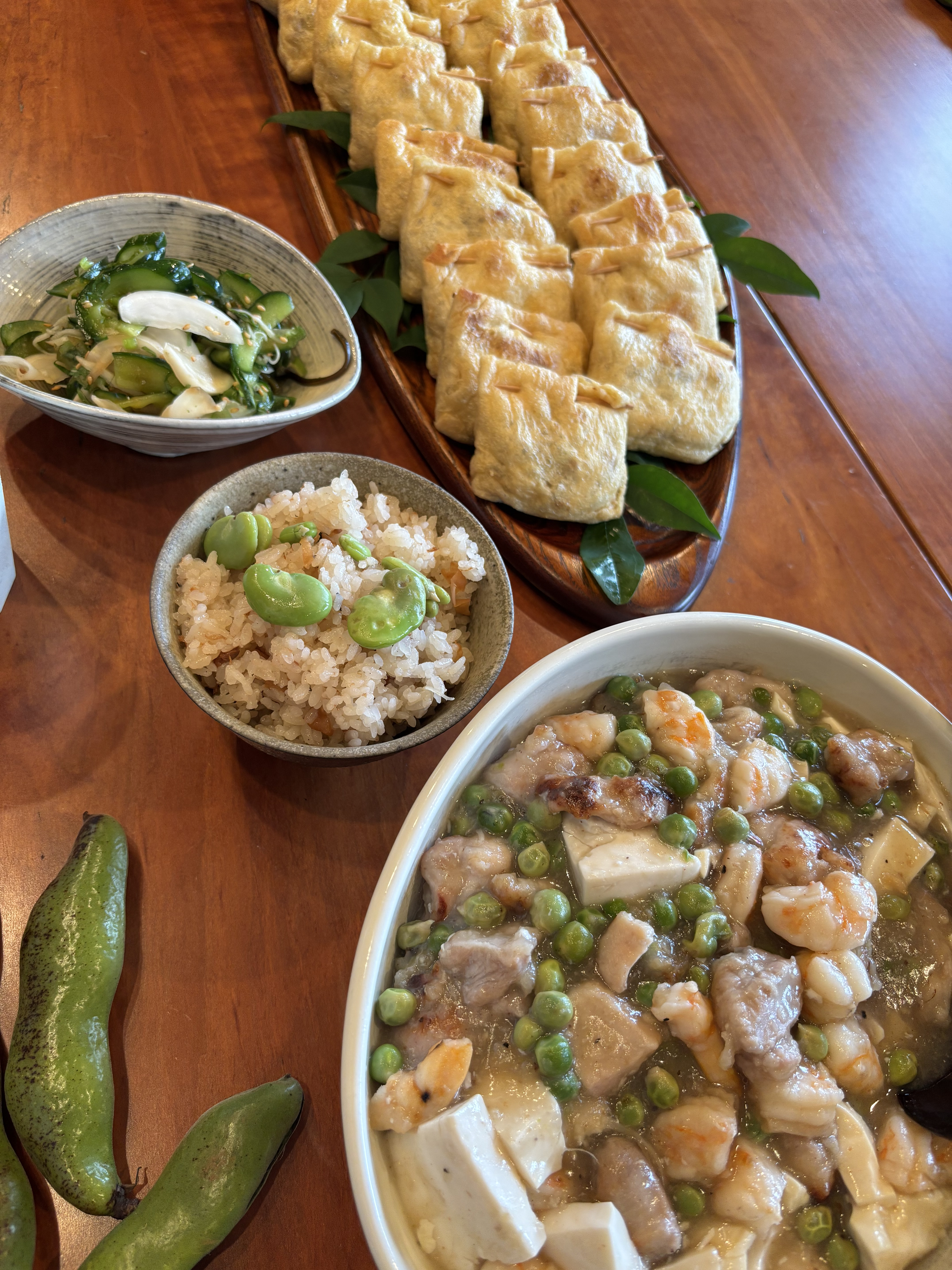 お昼ご飯についても、欠かさず記録したい。それは、農が食に向かう大切な流れであると思うからだ。畑で今が旬のそらまめ(蚕豆と書くらしい。知らなかった。)と、ここの梅でつくった梅干しを炊き合わせたご飯。先月食べたエンドウの「豆」の部分が大きくなった「グリンピース」が使われた鶏肉と豆腐の炒め物。この「作る」→「食べる」の流れが、どうしてここだとこんなにも鮮やかに見えるのだろうか。これを、自分の手で行えるようになったら、同じように鮮やかに感じられるのだろうか。チャレンジしてみよう。