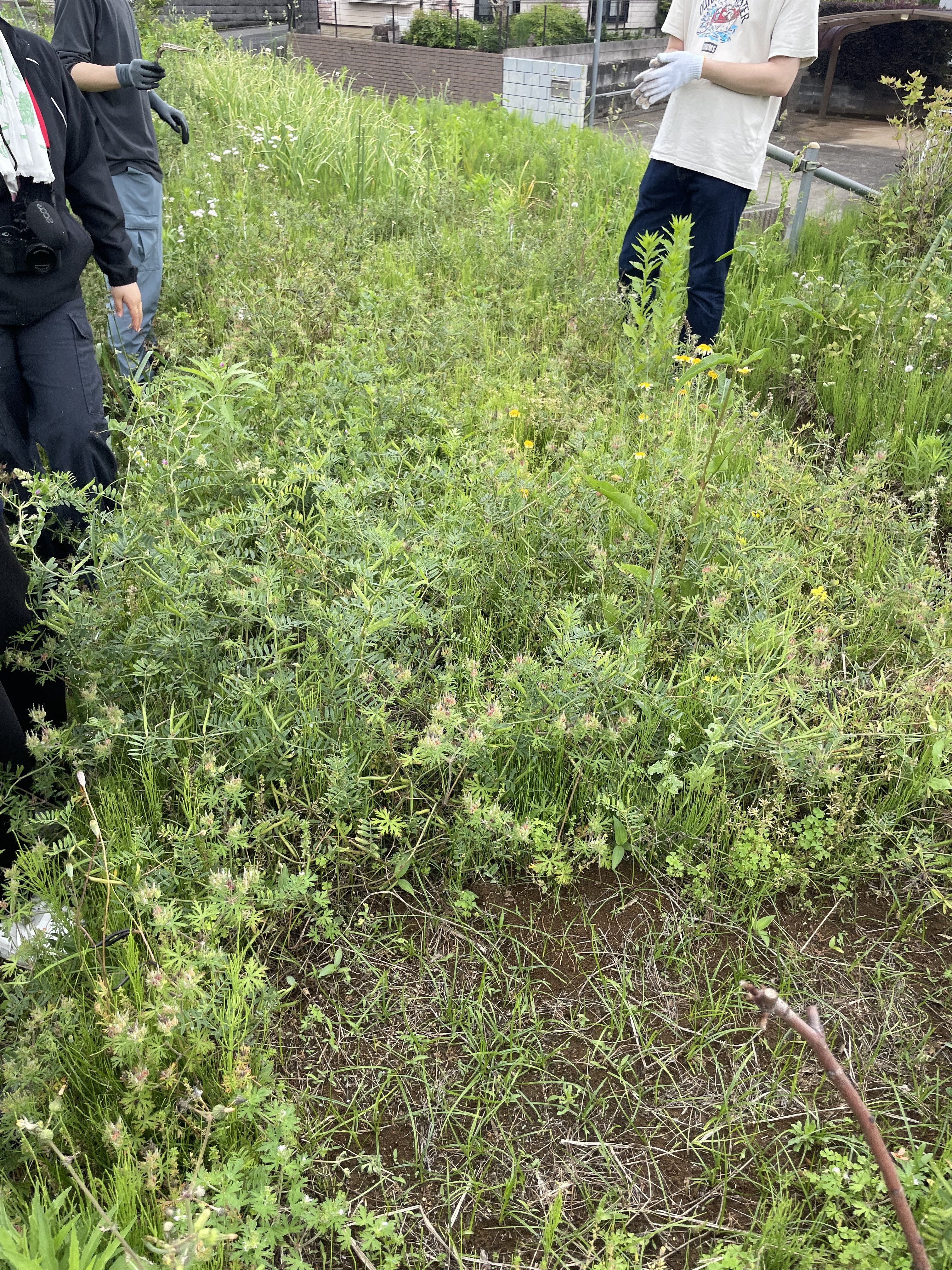 皆で種を持ち寄った前回の活動から約一か月、私はこの期間育苗の様子を見に来ることができなかったので、期待に胸を膨らませて「一枚の畑」を訪れた。久しぶりの畑はよりいっそう緑が増えていて、植物の声がどこからか聞こえてきそうなほどに賑やかだった。秋・冬を経て、昨年の八月に私が初めてこの場所を訪れた時の畑の姿が、徐々に戻ってきている。毎月この畑を訪れることによって、一年を通してめぐり、生きる自然と肌で触れ合えているような気がして、少し嬉しくなった。