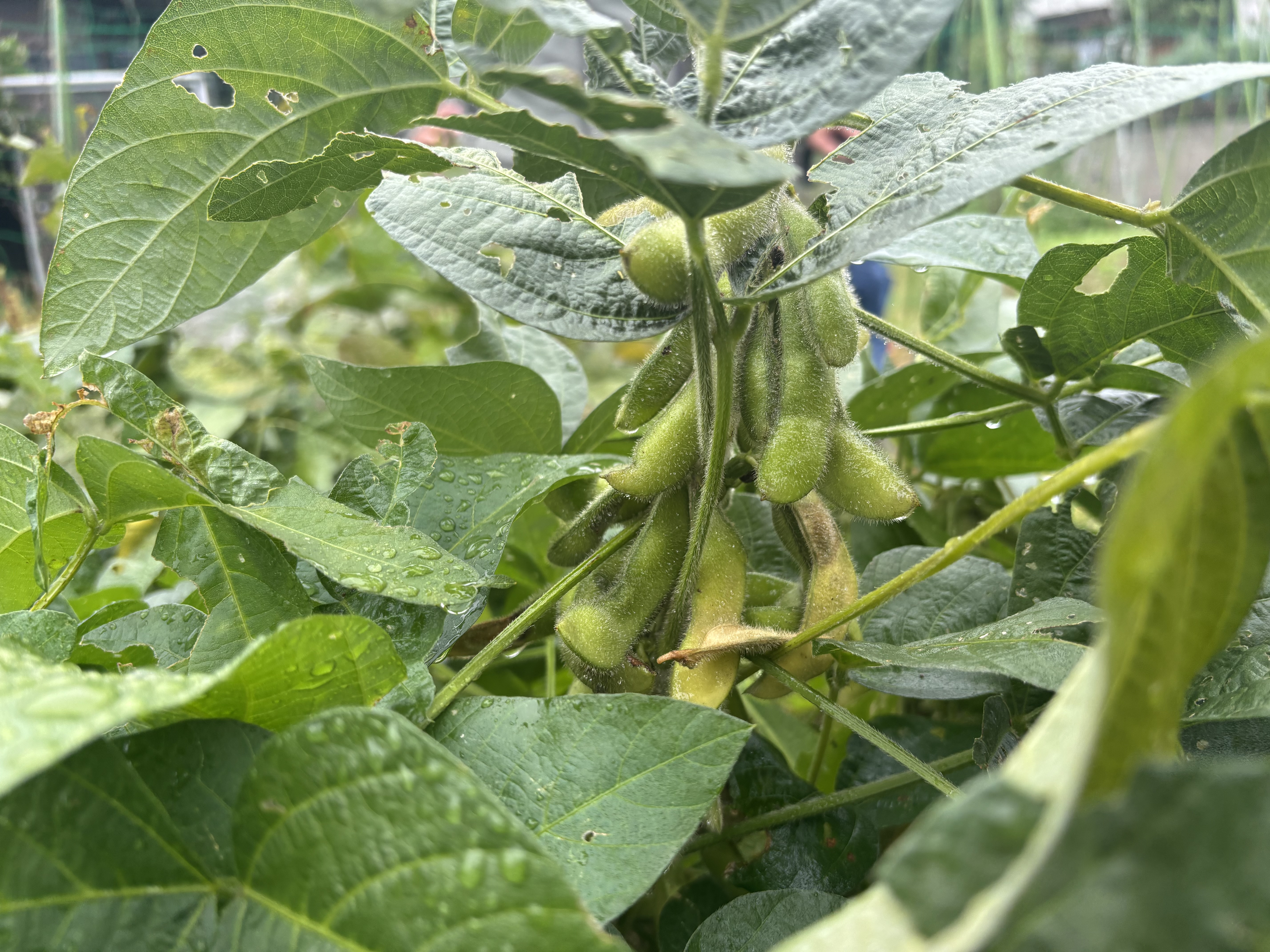 今月の畑は、春にまいた大豆の種からのフィードバックをもらった日だった。